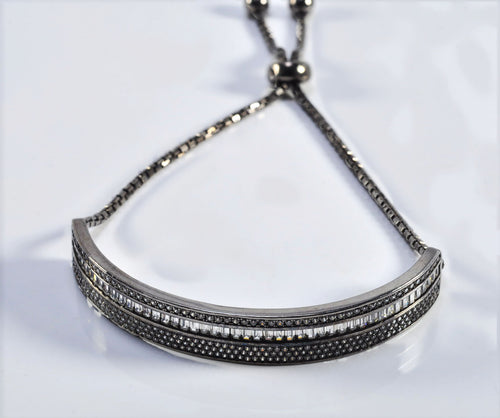 Elegant Black Silver Zircon Bracelet – Unique Handmade Gemstone Jewelry