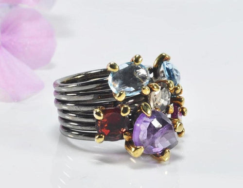 Elegant Aquamarine and Amethyst Sterling Silver Ring, Handmade Jewelry Gift for Her